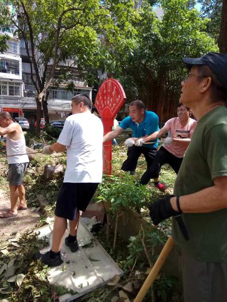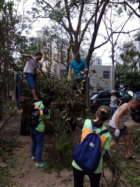 但災(zāi)難打不倒樂觀的廣東人,臺(tái)風(fēng)過后,人們立即行動(dòng)起來,積極投入到恢復(fù)重建當(dāng)中。26日,是風(fēng)災(zāi)過后第一個(gè)周六,不少珠海人自發(fā)地走上街頭,加入義工隊(duì)伍,親身參與城市清理工作,打通道路,恢復(fù)交通。